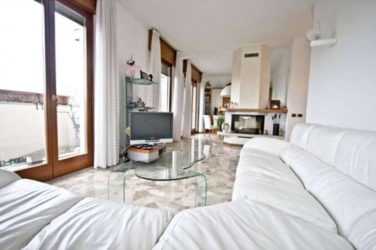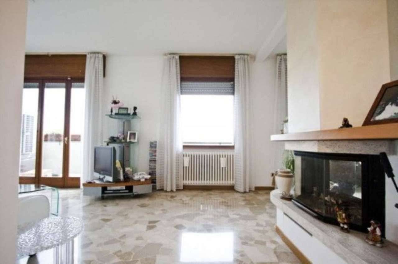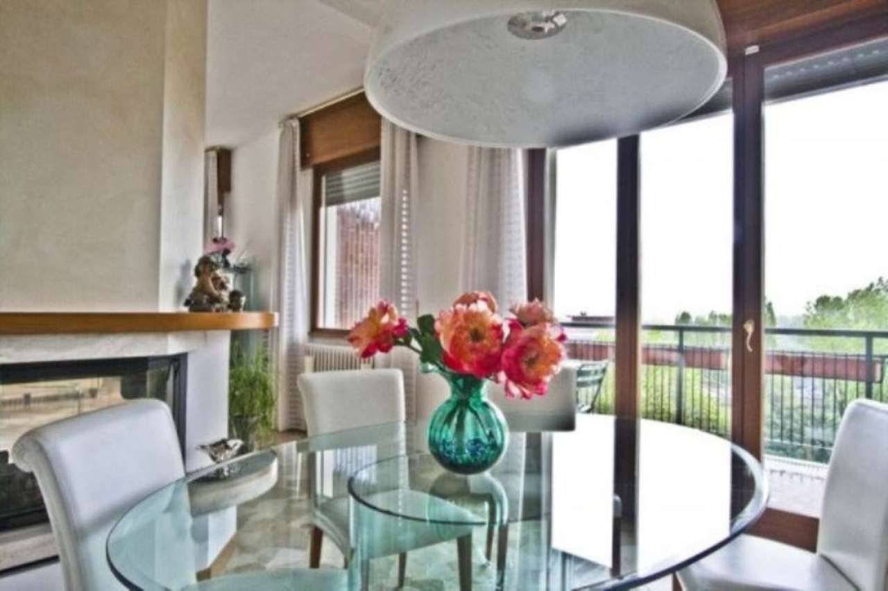 Ingresso, salone con ampie finestre, zona pranzo con terrazzo, cucina, 2 camere, studio/guardaroba, 2 bagni.