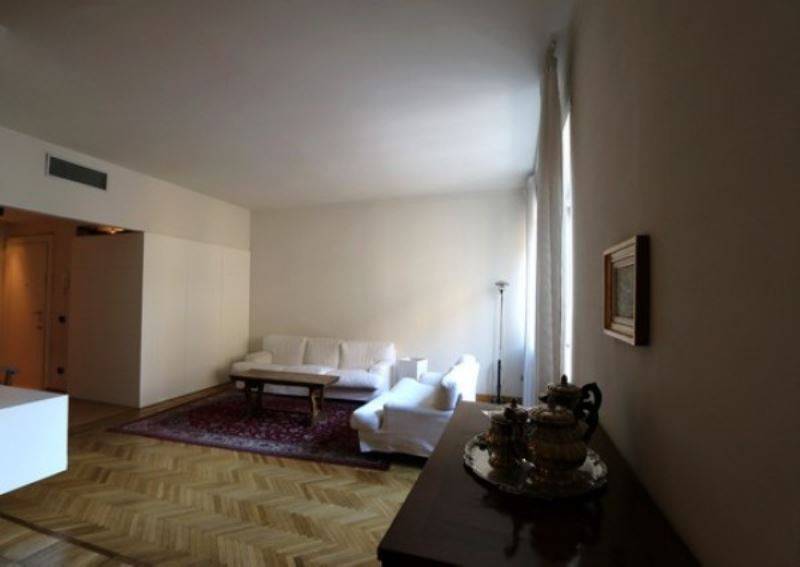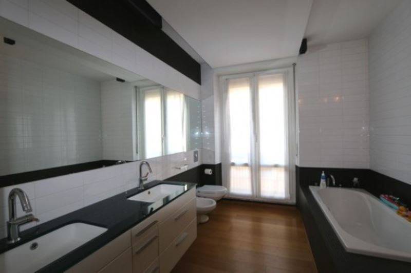 Ingresso, salone con zona pranzo, cucina abitabile con balcone e lavanderia, 2 camere, 2 bagni. Tutto parquet. Condizionato. Solaio