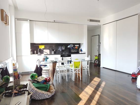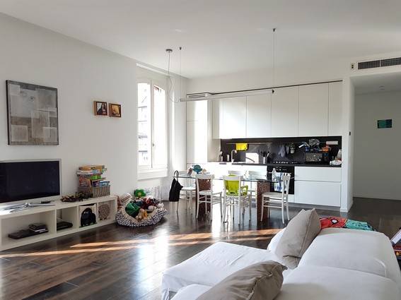 INGRESSO AMPIA SALA CON CUCINA (ARREDATA) A VISTA, CAMERA MATRIMONIALE CON BAGNO E CABINA ARMADIO, CAMERETTA/STUDIO, LAVANDERIA